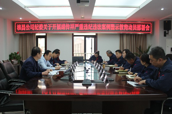 4月30日上午,核昌公司紀(jì)委在公司小會議室組織公司班子成員、各黨支部書記召開關(guān)于胡傳祥嚴(yán)重違紀(jì)違法案例警示教育動員部署會。會議由公司紀(jì)委書記梁英平主持。首先,梁書記對集團(tuán)公...