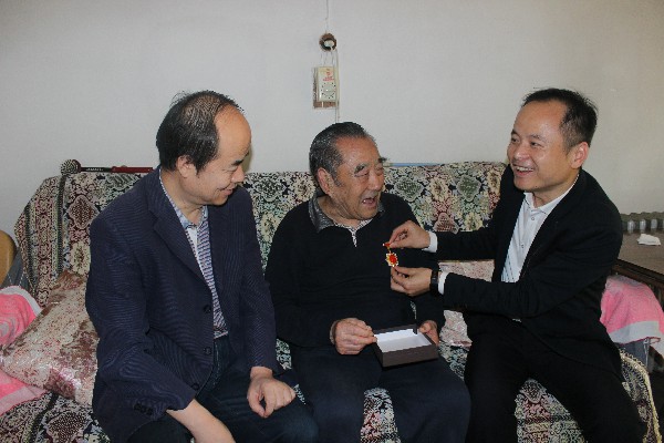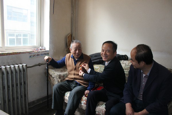 公司黨委書記、董事長王超宏將紀念章逐一送到邵汝澤、楊文起和崔榮壽等3名建國前參加工作的90多歲離休老干部手中,并親手為老同志佩戴上紀念章,其中邵汝澤接過紀念章激動地表示,他80歲以后就將自己的生日改到了10月1日,在這一天與祖國共同慶祝,他還每天堅持讀報看新聞,關(guān)心時事,將“不忘初心,牢記使命”鐫刻在自己的生命中;崔榮壽戴上紀念章后熱淚盈眶,強烈要求與公司領(lǐng)導(dǎo)合影留念。看到三位老人身體健康、精神矍鑠,王書記感到非常欣慰,囑咐他們保重身體,同時對他們在新中國建設(shè)過程中無私奉獻的精神致以崇高的敬意。